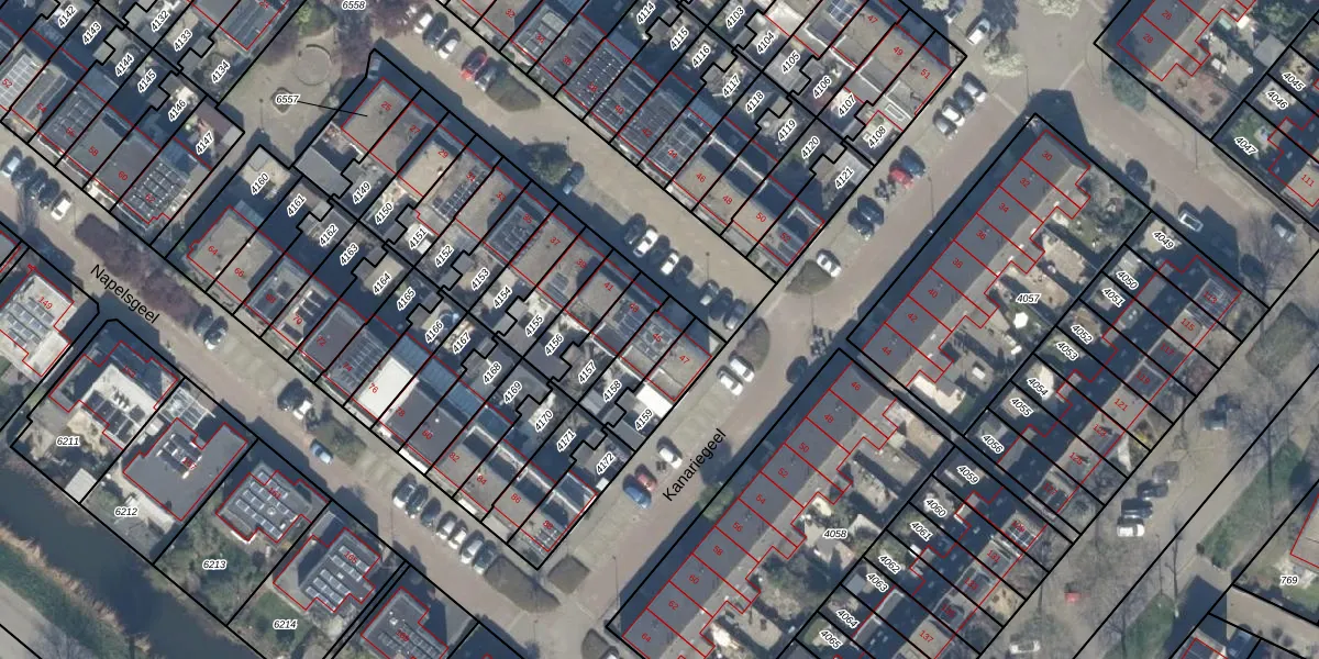 Gebruik de zoekbalk of klik op een perceel voor informatie over de adressen binnen dit perceel.