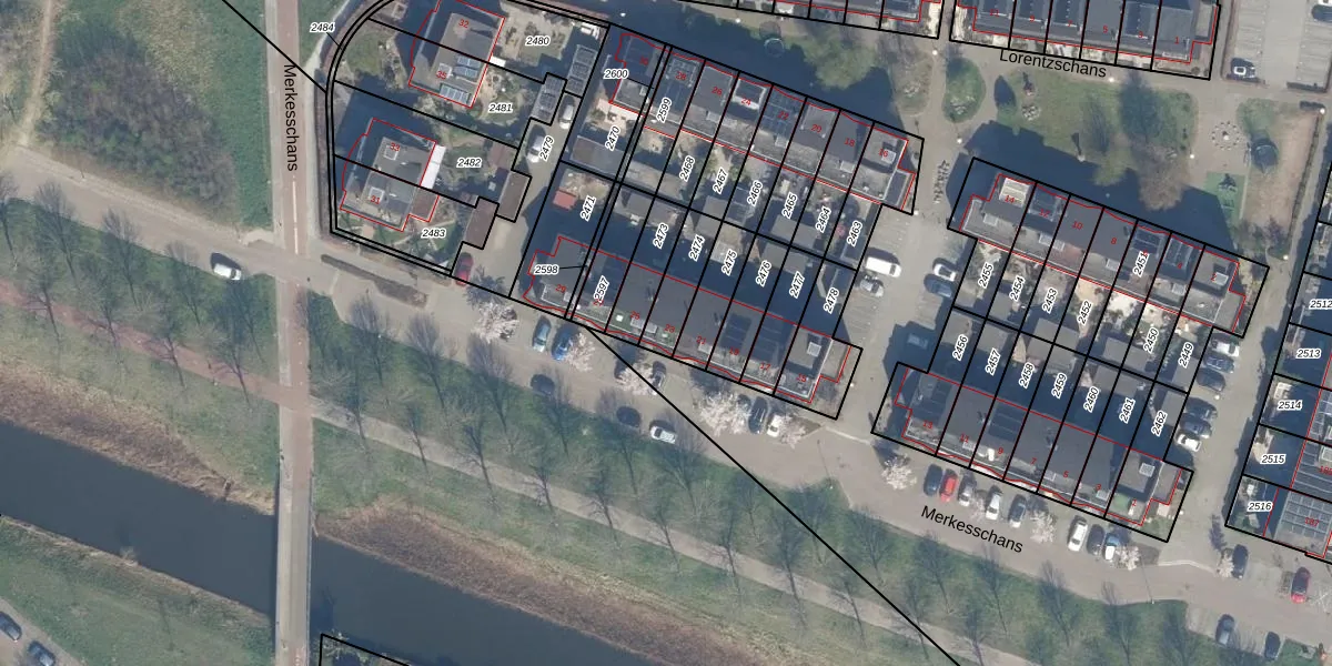 Het perceel waarop Merkesschans 23 staat heeft een oppervlakte van 119 m². Dit is een middelgroot perceel. De perceeloppervlakte wordt geregistreerd door het Kadaster. Gedetailleerde informatie over de maten van dit perceel kunt u vinden in het rapport Kadastrale kaart met maatvoering van Merkesschans 23.