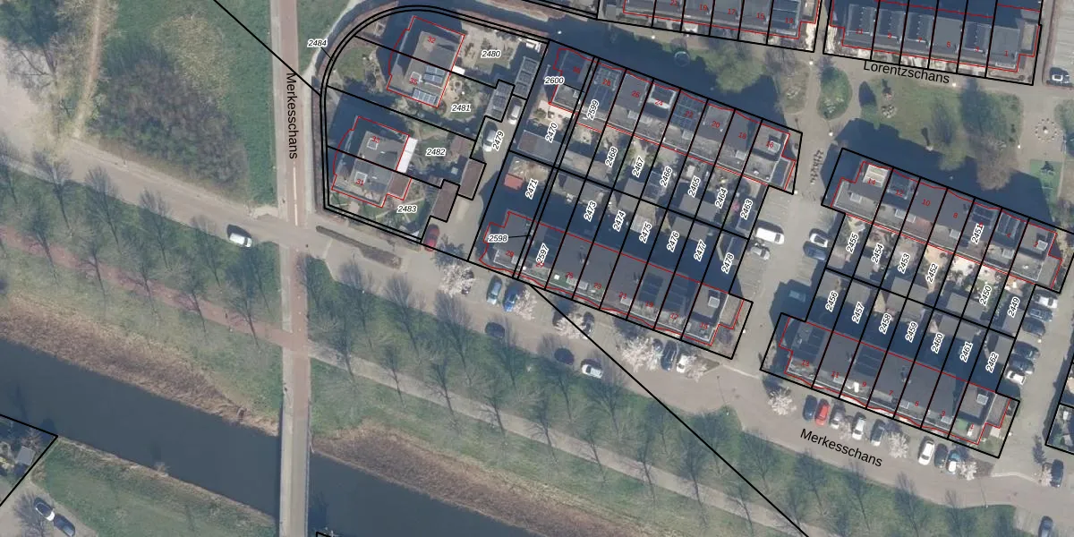 Gebruik de zoekbalk of klik op een perceel voor informatie over de adressen binnen dit perceel.
