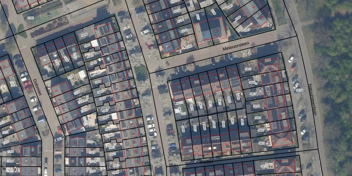 Gebruik de zoekbalk of klik op een perceel voor informatie over de adressen binnen dit perceel.
