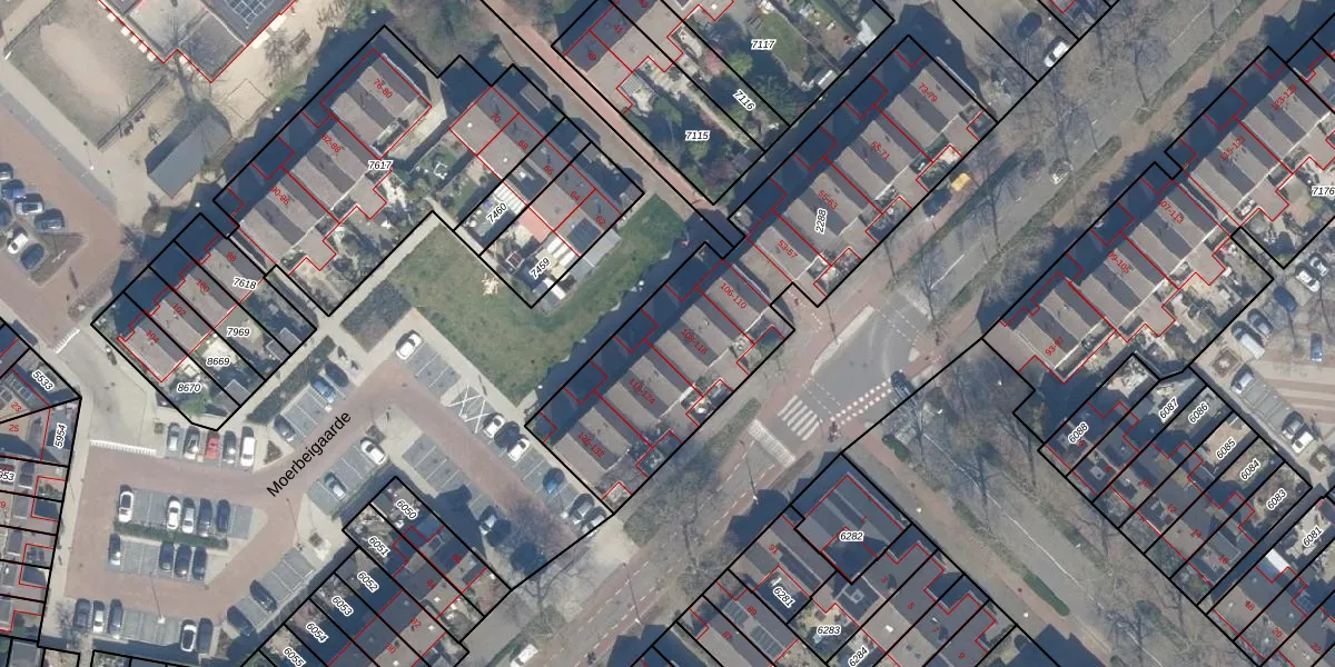 Moerbeigaarde 116 is gelegen op kadastraal perceel ZWD01B2288. Deze kadastrale aanduiding is uniek en wordt gebruikt door het Kadaster om eigendomsrechten en andere zakelijke rechten vast te leggen. Het perceel maakt onderdeel uit van de kadastrale gemeente Zegwaard.