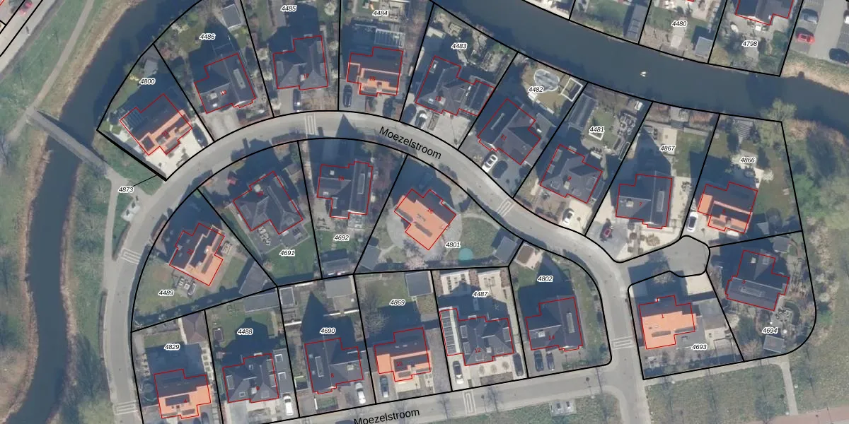 Gebruik de zoekbalk of klik op een perceel voor informatie over de adressen binnen dit perceel.