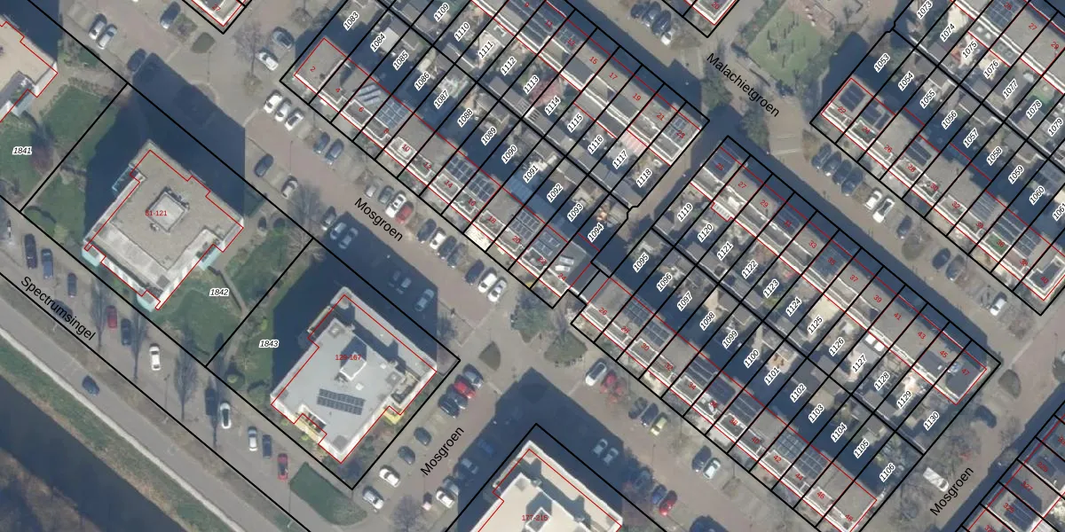 Gebruik de zoekbalk of klik op een perceel voor informatie over de adressen binnen dit perceel.