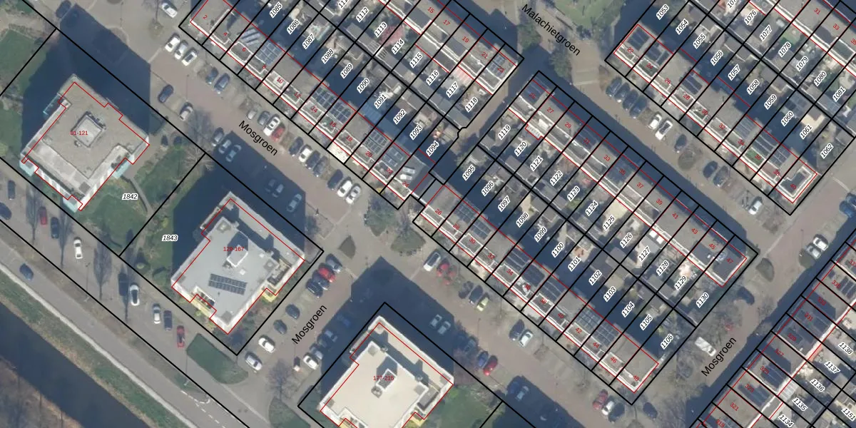Gebruik de zoekbalk of klik op een perceel voor informatie over de adressen binnen dit perceel.