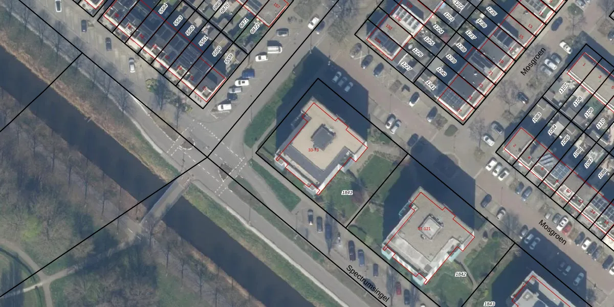 Het perceel waarop Mosgroen 55 staat heeft een oppervlakte van 1208 m². Dit is een zeer groot perceel. De perceeloppervlakte wordt geregistreerd door het Kadaster. Gedetailleerde informatie over de maten van dit perceel kunt u vinden in het rapport Kadastrale kaart met maatvoering van Mosgroen 55.