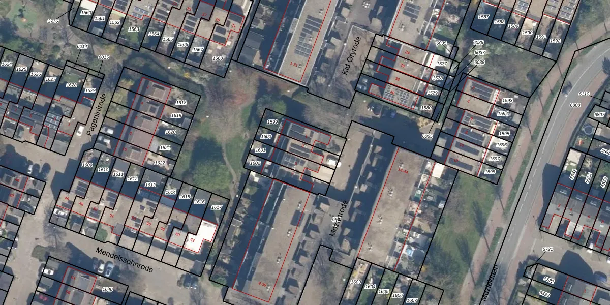 Gebruik de zoekbalk of klik op een perceel voor informatie over de adressen binnen dit perceel.