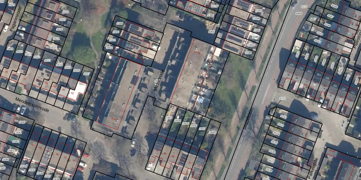 Het perceel waarop Mozartrode 42 staat heeft een oppervlakte van 2775 m². Dit is een zeer groot perceel. De perceeloppervlakte wordt geregistreerd door het Kadaster. Gedetailleerde informatie over de maten van dit perceel kunt u vinden in het rapport Kadastrale kaart met maatvoering van Mozartrode 42.
