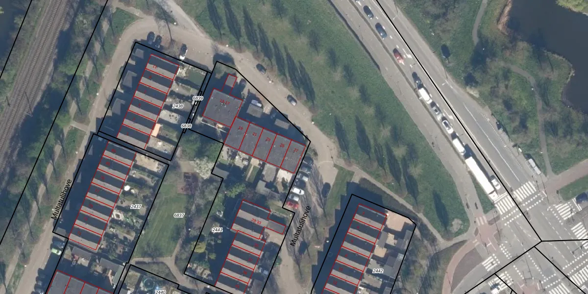 Het perceel waarop Multatulihove 27 staat heeft een oppervlakte van 2017 m². Dit is een zeer groot perceel. De perceeloppervlakte wordt geregistreerd door het Kadaster. Gedetailleerde informatie over de maten van dit perceel kunt u vinden in het rapport Kadastrale kaart met maatvoering van Multatulihove 27.
