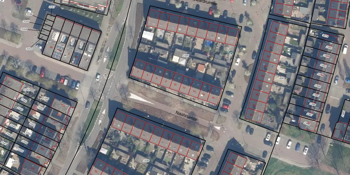 Het perceel waarop Nashruimte 10 staat heeft een oppervlakte van 2490 m². Dit is een zeer groot perceel. De perceeloppervlakte wordt geregistreerd door het Kadaster. Gedetailleerde informatie over de maten van dit perceel kunt u vinden in het rapport Kadastrale kaart met maatvoering van Nashruimte 10.