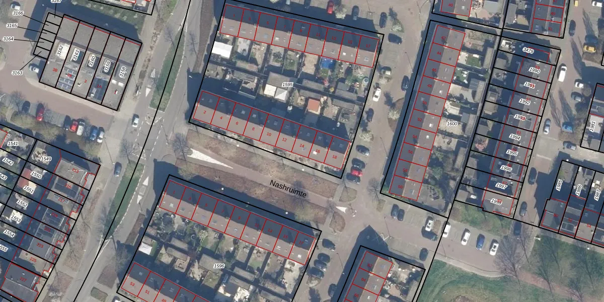 Het perceel waarop Nashruimte 14 staat heeft een oppervlakte van 2490 m². Dit is een zeer groot perceel. De perceeloppervlakte wordt geregistreerd door het Kadaster. Gedetailleerde informatie over de maten van dit perceel kunt u vinden in het rapport Kadastrale kaart met maatvoering van Nashruimte 14.