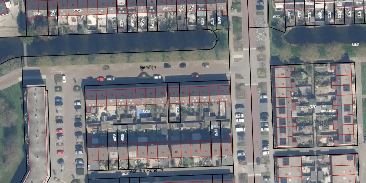 Het perceel waarop Nervilijn 10 staat heeft een oppervlakte van 3161 m². Dit is een zeer groot perceel. De perceeloppervlakte wordt geregistreerd door het Kadaster. Gedetailleerde informatie over de maten van dit perceel kunt u vinden in het rapport Kadastrale kaart met maatvoering van Nervilijn 10.