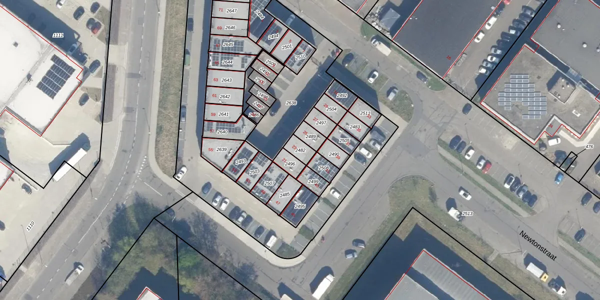 Het perceel waarop Newtonstraat 23 staat heeft een oppervlakte van 56 m². Dit is een klein perceel. De perceeloppervlakte wordt geregistreerd door het Kadaster. Gedetailleerde informatie over de maten van dit perceel kunt u vinden in het rapport Kadastrale kaart met maatvoering van Newtonstraat 23.