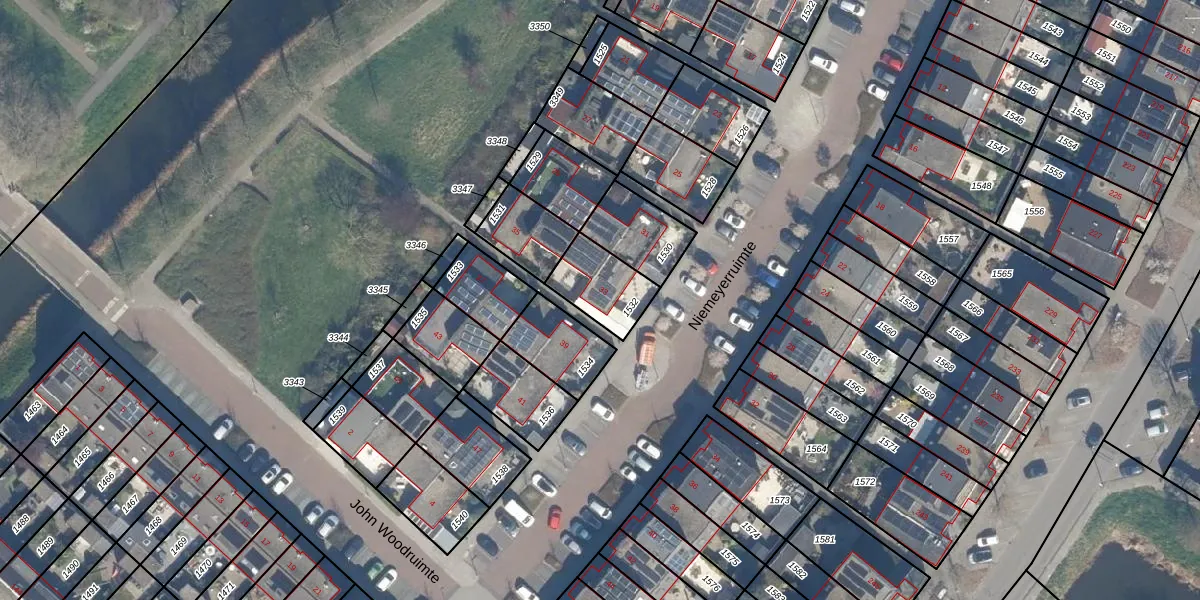 Het perceel waarop Niemeyerruimte 33 staat heeft een oppervlakte van 174 m². Dit is een middelgroot perceel. De perceeloppervlakte wordt geregistreerd door het Kadaster. Gedetailleerde informatie over de maten van dit perceel kunt u vinden in het rapport Kadastrale kaart met maatvoering van Niemeyerruimte 33.