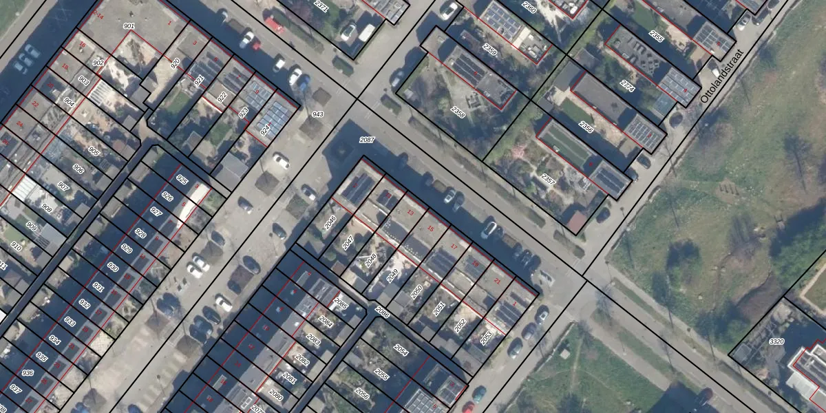 Gebruik de zoekbalk of klik op een perceel voor informatie over de adressen binnen dit perceel.