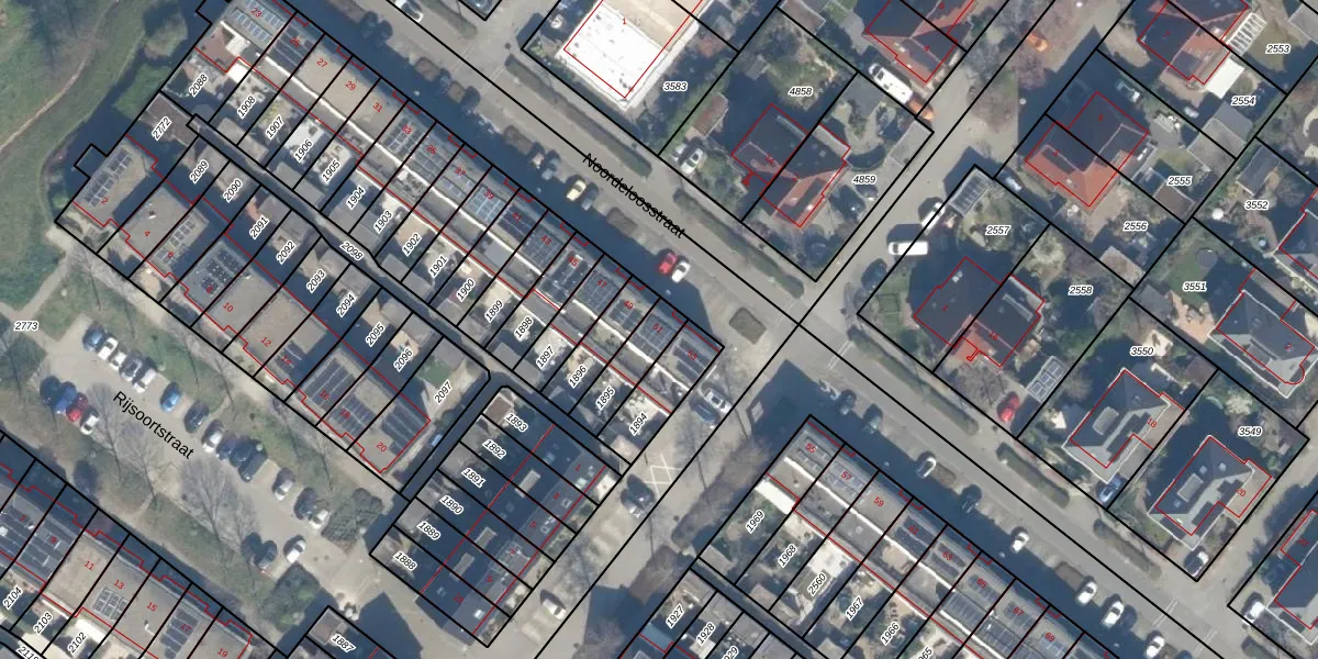Gebruik de zoekbalk of klik op een perceel voor informatie over de adressen binnen dit perceel.
