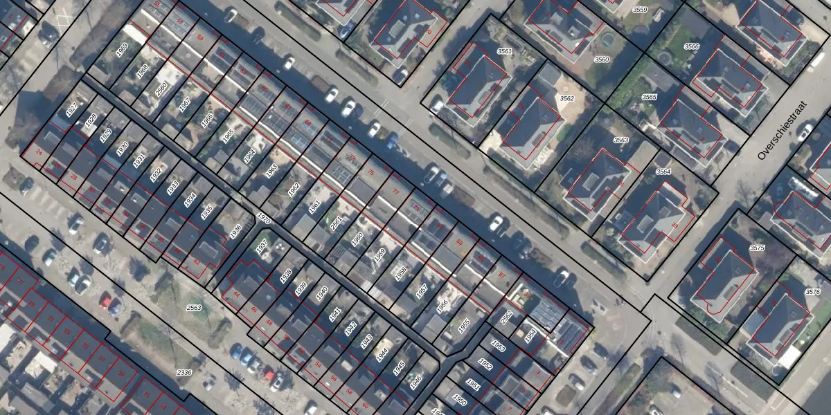 Gebruik de zoekbalk of klik op een perceel voor informatie over de adressen binnen dit perceel.