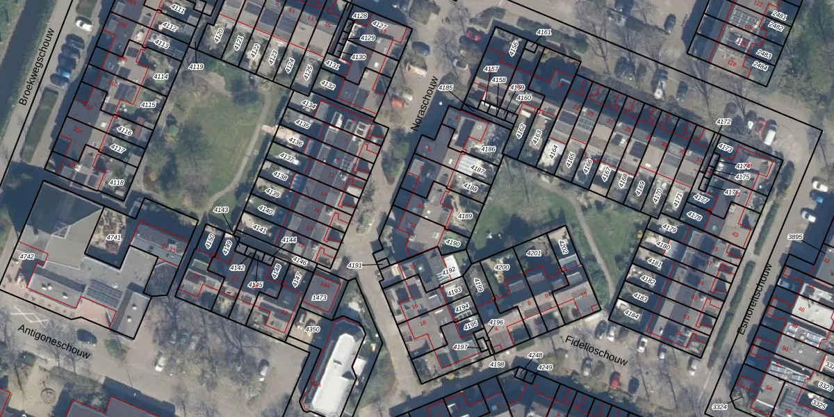 Gebruik de zoekbalk of klik op een perceel voor informatie over de adressen binnen dit perceel.
