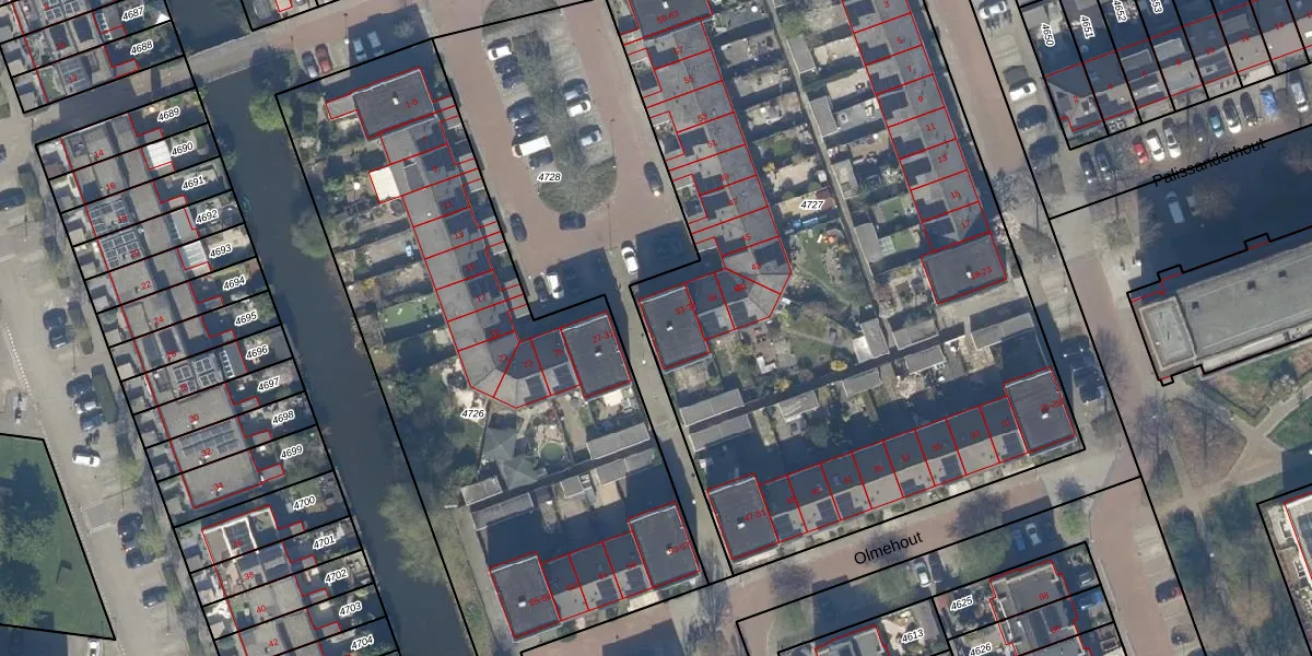 Het perceel waarop Okanhout 33 staat heeft een oppervlakte van 4620 m². Dit is een zeer groot perceel. De perceeloppervlakte wordt geregistreerd door het Kadaster. Gedetailleerde informatie over de maten van dit perceel kunt u vinden in het rapport Kadastrale kaart met maatvoering van Okanhout 33.