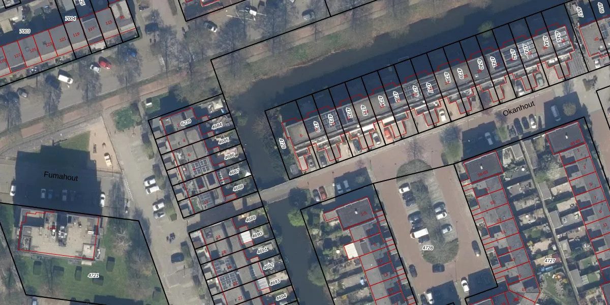 Gebruik de zoekbalk of klik op een perceel voor informatie over de adressen binnen dit perceel.