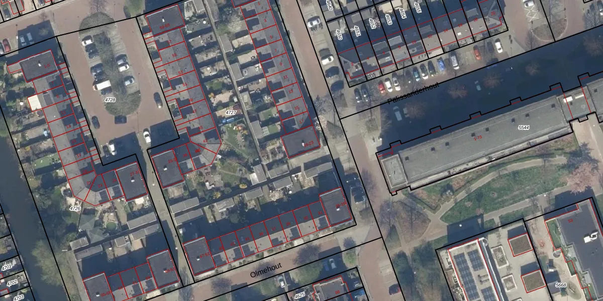 Het perceel waarop Olmehout 19 staat heeft een oppervlakte van 4620 m². Dit is een zeer groot perceel. De perceeloppervlakte wordt geregistreerd door het Kadaster. Gedetailleerde informatie over de maten van dit perceel kunt u vinden in het rapport Kadastrale kaart met maatvoering van Olmehout 19.