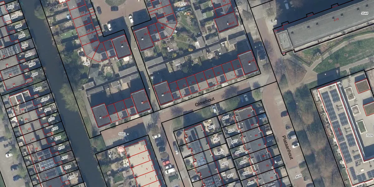 Het perceel waarop Olmehout 43 staat heeft een oppervlakte van 4620 m². Dit is een zeer groot perceel. De perceeloppervlakte wordt geregistreerd door het Kadaster. Gedetailleerde informatie over de maten van dit perceel kunt u vinden in het rapport Kadastrale kaart met maatvoering van Olmehout 43.