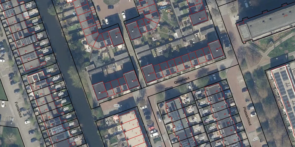Het perceel waarop Olmehout 49 staat heeft een oppervlakte van 4620 m². Dit is een zeer groot perceel. De perceeloppervlakte wordt geregistreerd door het Kadaster. Gedetailleerde informatie over de maten van dit perceel kunt u vinden in het rapport Kadastrale kaart met maatvoering van Olmehout 49.