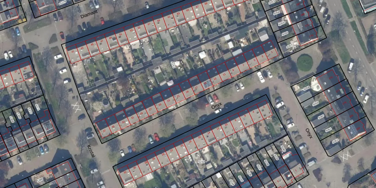 Het perceel waarop Onyx 19 staat heeft een oppervlakte van 5580 m². Dit is een zeer groot perceel. De perceeloppervlakte wordt geregistreerd door het Kadaster. Gedetailleerde informatie over de maten van dit perceel kunt u vinden in het rapport Kadastrale kaart met maatvoering van Onyx 19.