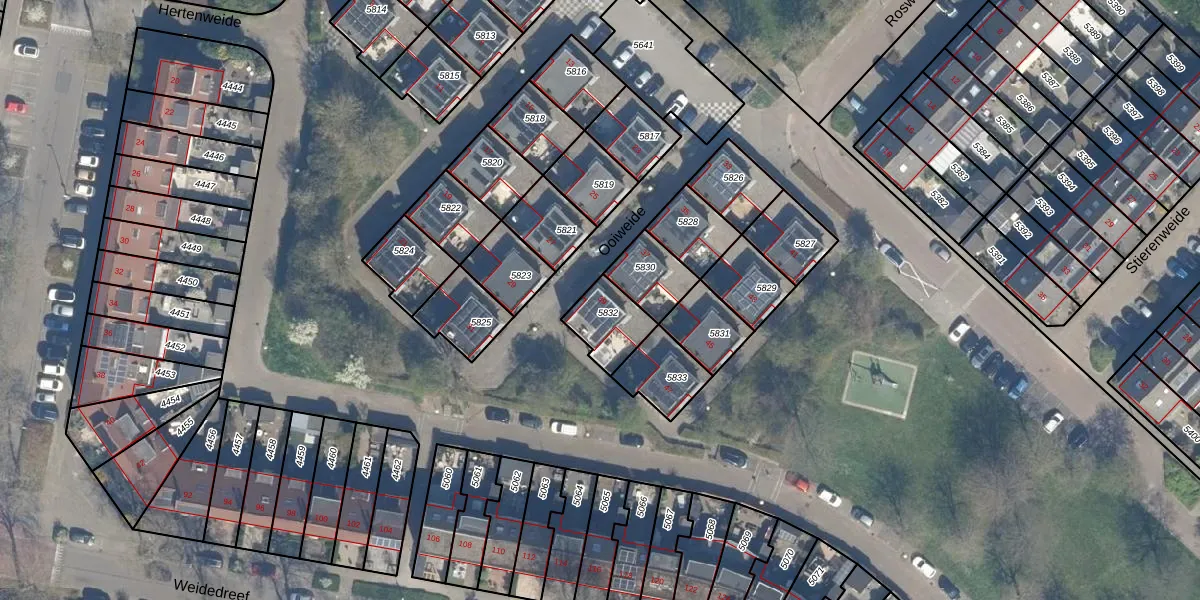 Het perceel waarop Ooiweide 39 staat heeft een oppervlakte van 137 m². Dit is een middelgroot perceel. De perceeloppervlakte wordt geregistreerd door het Kadaster. Gedetailleerde informatie over de maten van dit perceel kunt u vinden in het rapport Kadastrale kaart met maatvoering van Ooiweide 39.