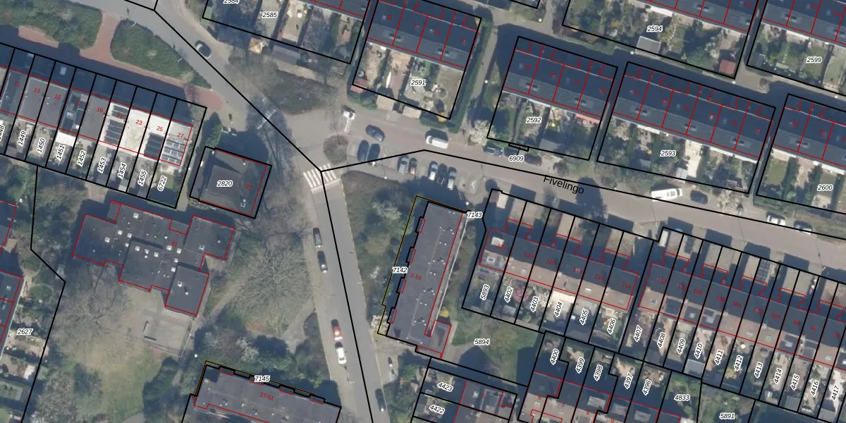 Het perceel waarop het adres ligt is ZTM00-E-7142. De afkorting 'ZTM00' staat voor kadastrale gemeente Zoetermeer. Het perceel is 89 m² groot. Dat is kleiner dan de gemiddelde perceeloppervlakte in Zoetermeer, dat op 1511,23 m² ligt. De grootste perceeloppervlakte in de kadastrale gemeente is 1,16 km². De kleinste oppervlakte bedraagt 0 m². Er zijn 4 adressen aanwezig op het perceel. De huidige grenzen van het perceel zijn digitaal in de Basisregistratie Kadaster (BRK) geregistreerd op 02-12-2025.