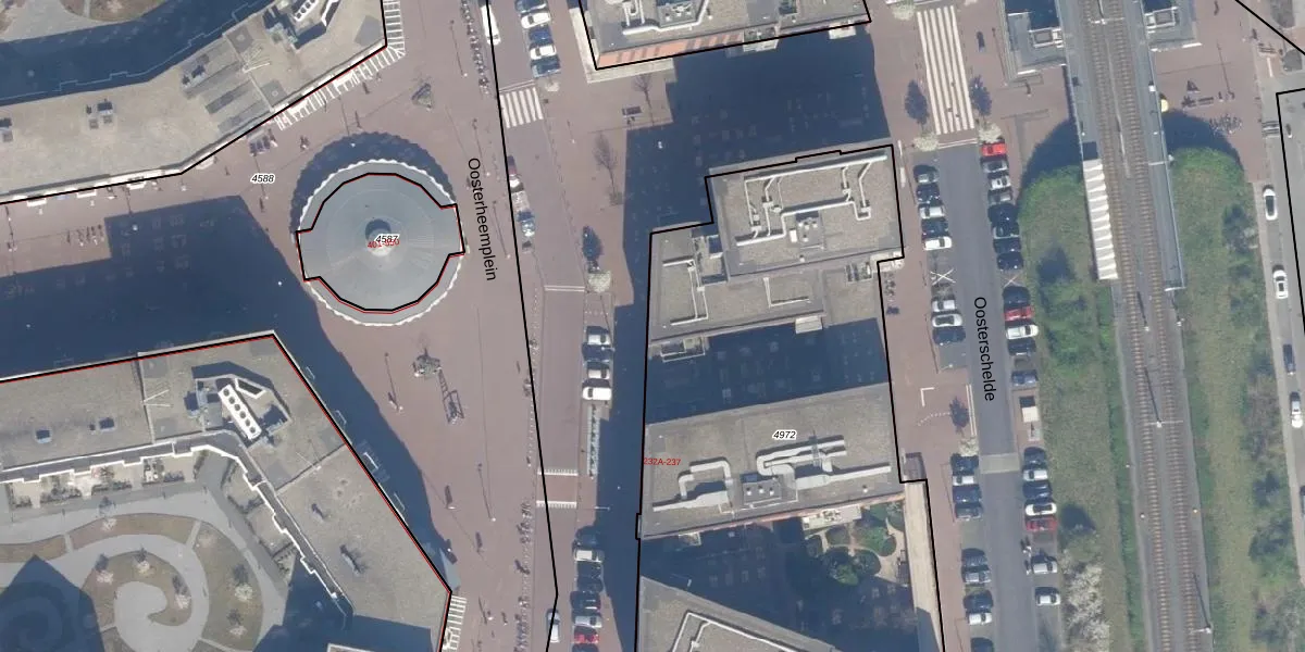 Het perceel waarop Oosterheemplein 250 staat heeft een oppervlakte van 3988 m². Dit is een zeer groot perceel. De perceeloppervlakte wordt geregistreerd door het Kadaster. Gedetailleerde informatie over de maten van dit perceel kunt u vinden in het rapport Kadastrale kaart met maatvoering van Oosterheemplein 250.