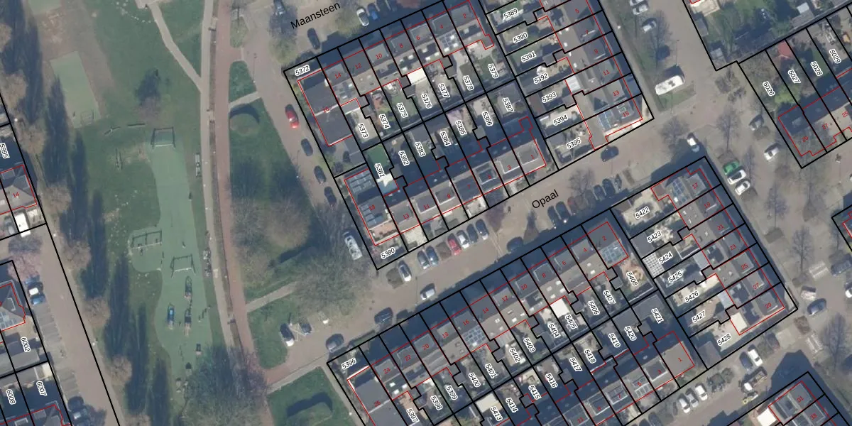 Het perceel waarop Opaal 11 staat heeft een oppervlakte van 139 m². Dit is een middelgroot perceel. De perceeloppervlakte wordt geregistreerd door het Kadaster. Gedetailleerde informatie over de maten van dit perceel kunt u vinden in het rapport Kadastrale kaart met maatvoering van Opaal 11.