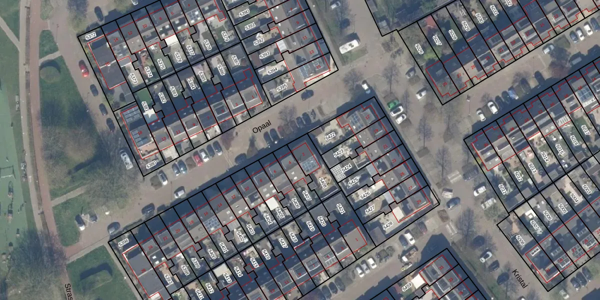 Het perceel waarop Opaal 2 staat heeft een oppervlakte van 173 m². Dit is een middelgroot perceel. De perceeloppervlakte wordt geregistreerd door het Kadaster. Gedetailleerde informatie over de maten van dit perceel kunt u vinden in het rapport Kadastrale kaart met maatvoering van Opaal 2.