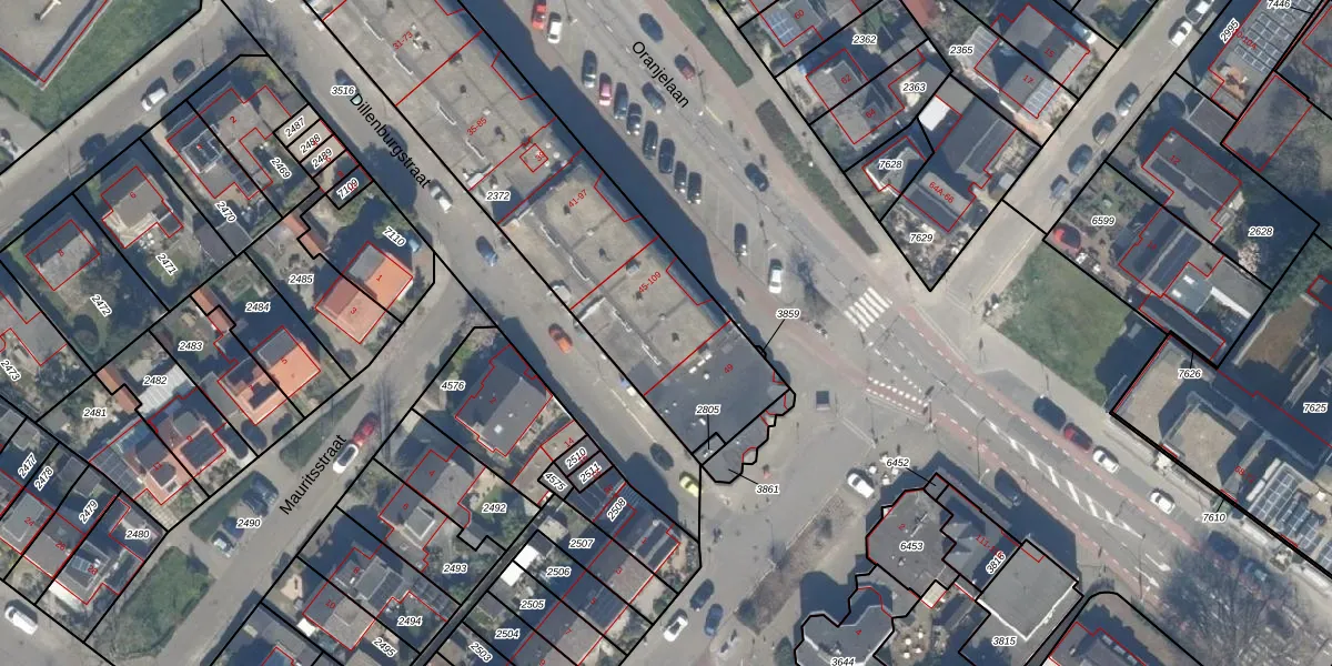 Het perceel waarop Oranjelaan 105 staat heeft een oppervlakte van 2065 m². Dit is een zeer groot perceel. De perceeloppervlakte wordt geregistreerd door het Kadaster. Gedetailleerde informatie over de maten van dit perceel kunt u vinden in het rapport Kadastrale kaart met maatvoering van Oranjelaan 105.