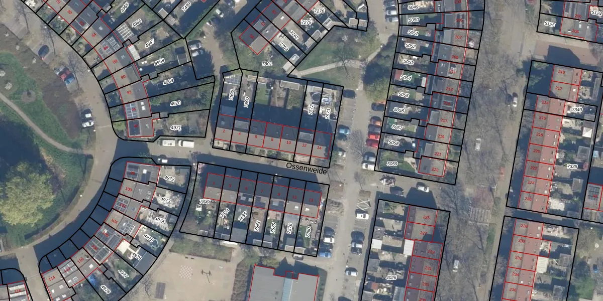 Ossenweide 12 is gelegen op kadastraal perceel ZWD01B7572. Deze kadastrale aanduiding is uniek en wordt gebruikt door het Kadaster om eigendomsrechten en andere zakelijke rechten vast te leggen. Het perceel maakt onderdeel uit van de kadastrale gemeente Zegwaard.