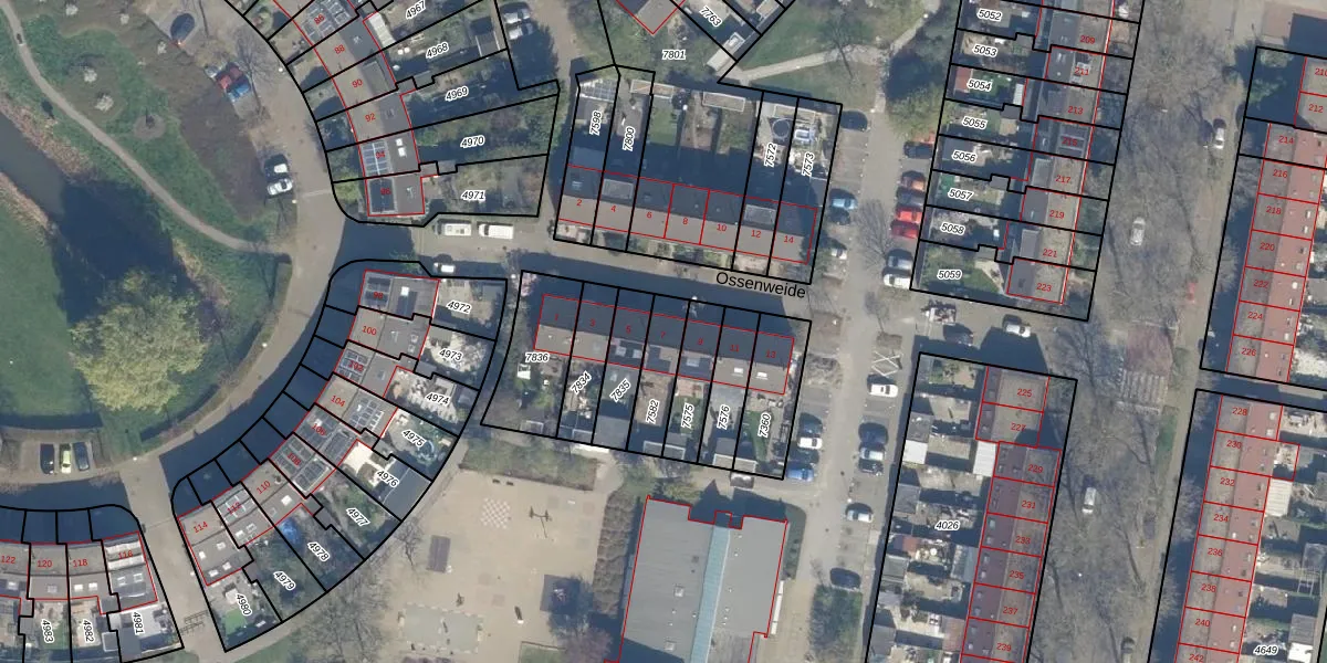 Ossenweide 7 is gelegen op kadastraal perceel ZWD01B7582. Deze kadastrale aanduiding is uniek en wordt gebruikt door het Kadaster om eigendomsrechten en andere zakelijke rechten vast te leggen. Het perceel maakt onderdeel uit van de kadastrale gemeente Zegwaard.