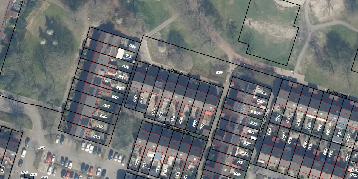 Gebruik de zoekbalk of klik op een perceel voor informatie over de adressen binnen dit perceel.