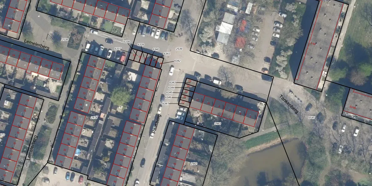 Gebruik de zoekbalk of klik op een perceel voor informatie over de adressen binnen dit perceel.