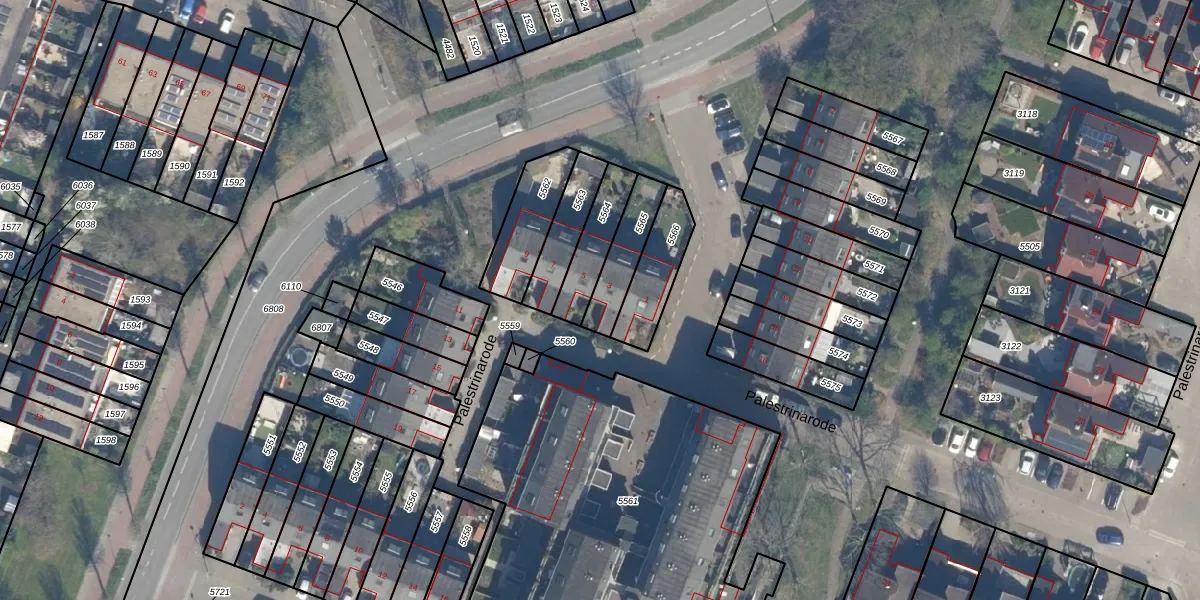 Gebruik de zoekbalk of klik op een perceel voor informatie over de adressen binnen dit perceel.