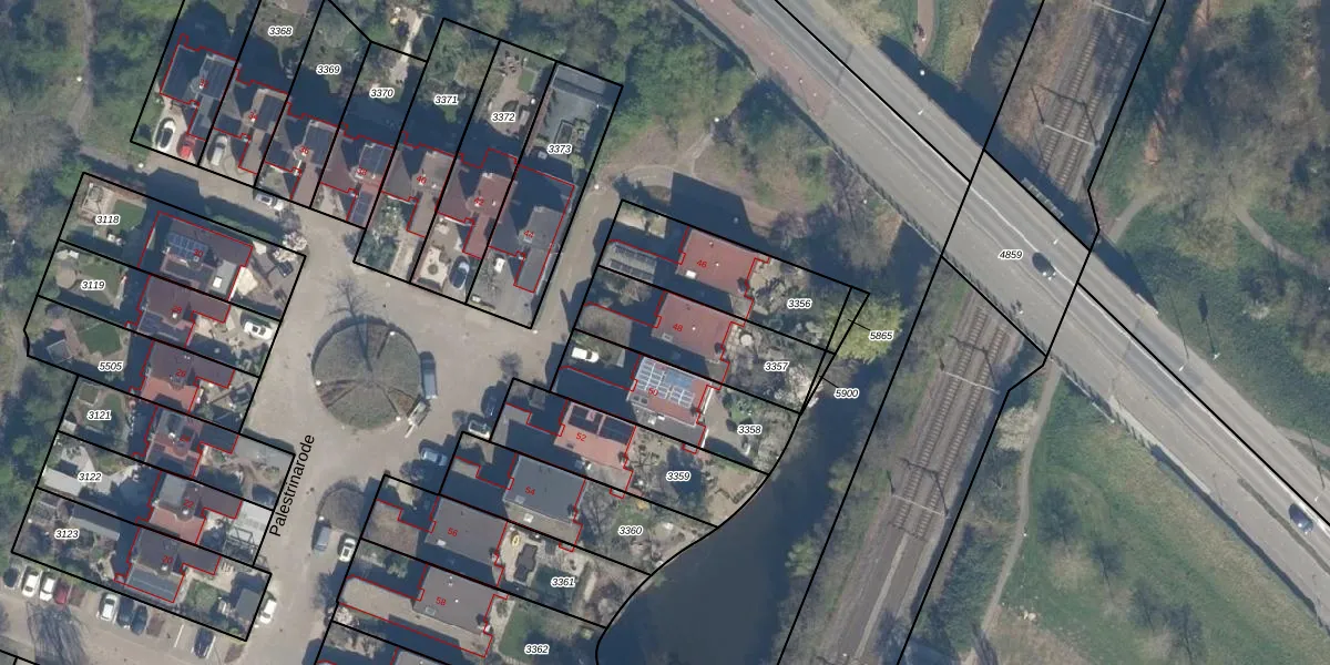 Het perceel waarop Palestrinarode 48 staat heeft een oppervlakte van 372 m². Dit is een groot perceel. De perceeloppervlakte wordt geregistreerd door het Kadaster. Gedetailleerde informatie over de maten van dit perceel kunt u vinden in het rapport Kadastrale kaart met maatvoering van Palestrinarode 48.