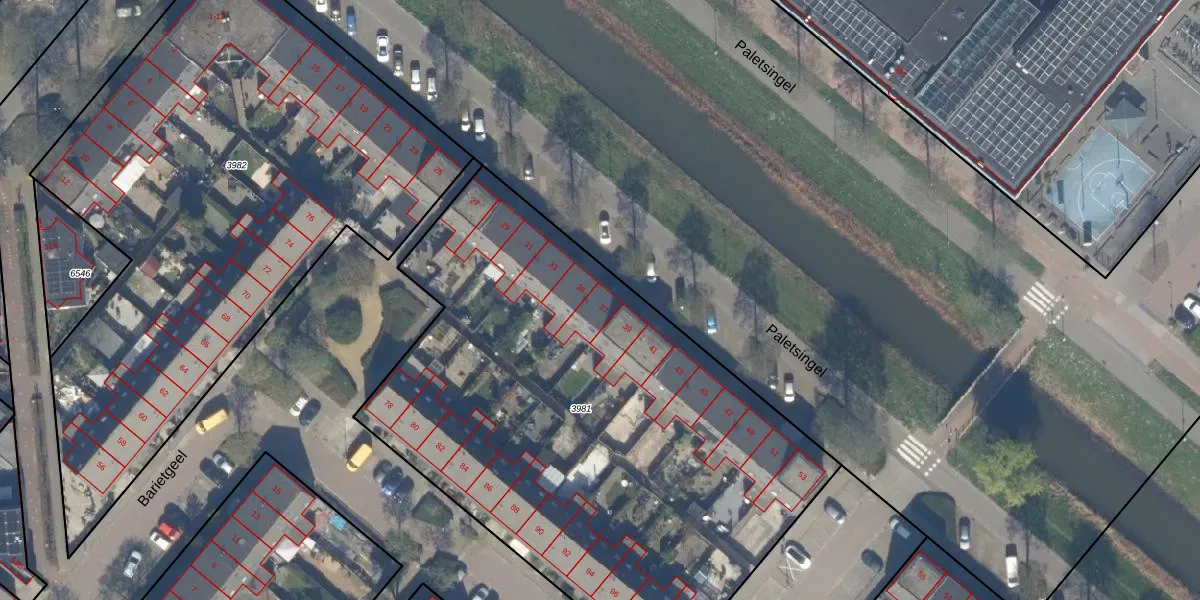 Het perceel waarop Paletsingel 37 staat heeft een oppervlakte van 3338 m². Dit is een zeer groot perceel. De perceeloppervlakte wordt geregistreerd door het Kadaster. Gedetailleerde informatie over de maten van dit perceel kunt u vinden in het rapport Kadastrale kaart met maatvoering van Paletsingel 37.