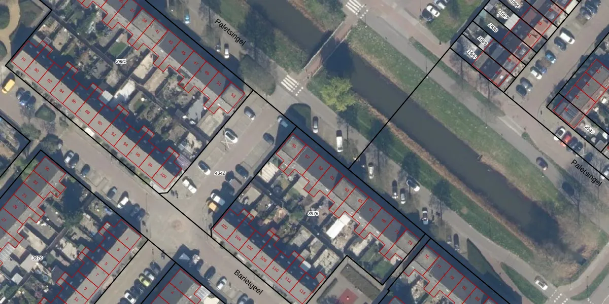 Het perceel waarop Paletsingel 57 staat heeft een oppervlakte van 2166 m². Dit is een zeer groot perceel. De perceeloppervlakte wordt geregistreerd door het Kadaster. Gedetailleerde informatie over de maten van dit perceel kunt u vinden in het rapport Kadastrale kaart met maatvoering van Paletsingel 57.