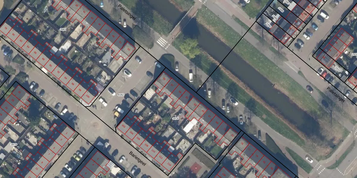 Het perceel waarop Paletsingel 59 staat heeft een oppervlakte van 2166 m². Dit is een zeer groot perceel. De perceeloppervlakte wordt geregistreerd door het Kadaster. Gedetailleerde informatie over de maten van dit perceel kunt u vinden in het rapport Kadastrale kaart met maatvoering van Paletsingel 59.