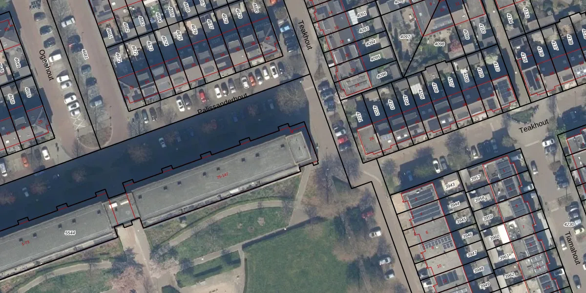 Het perceel waarop Palissanderhout 133 staat heeft een oppervlakte van 2126 m². Dit is een zeer groot perceel. De perceeloppervlakte wordt geregistreerd door het Kadaster. Gedetailleerde informatie over de maten van dit perceel kunt u vinden in het rapport Kadastrale kaart met maatvoering van Palissanderhout 133.