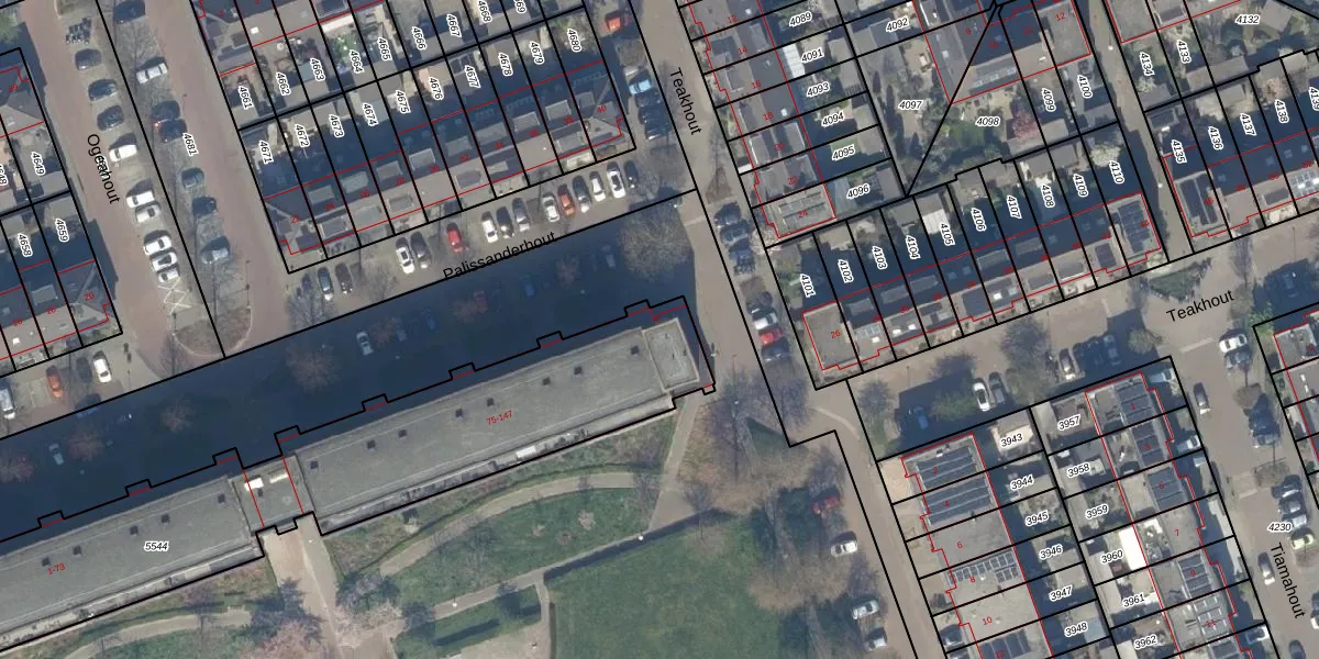 Het perceel waarop Palissanderhout 89 staat heeft een oppervlakte van 2126 m². Dit is een zeer groot perceel. De perceeloppervlakte wordt geregistreerd door het Kadaster. Gedetailleerde informatie over de maten van dit perceel kunt u vinden in het rapport Kadastrale kaart met maatvoering van Palissanderhout 89.