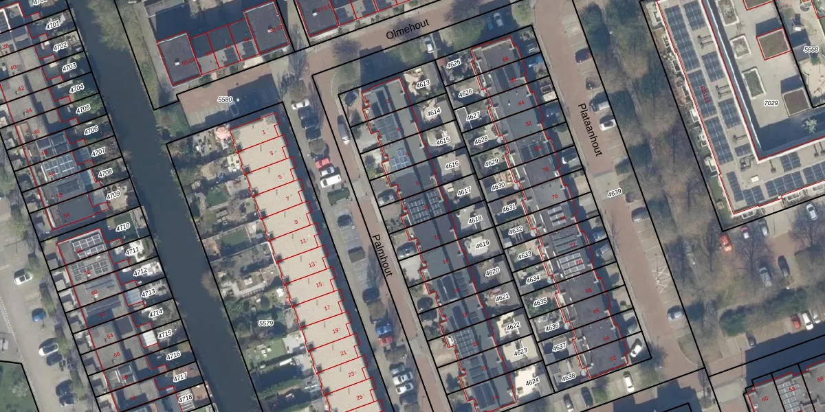 Het perceel waarop Palmhout 10 staat heeft een oppervlakte van 172 m². Dit is een middelgroot perceel. De perceeloppervlakte wordt geregistreerd door het Kadaster. Gedetailleerde informatie over de maten van dit perceel kunt u vinden in het rapport Kadastrale kaart met maatvoering van Palmhout 10.