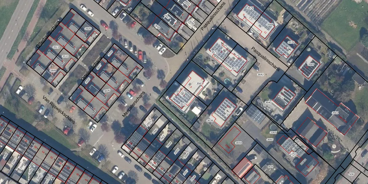 Het perceel waarop Pasqualinischans 1 staat heeft een oppervlakte van 349 m². Dit is een groot perceel. De perceeloppervlakte wordt geregistreerd door het Kadaster. Gedetailleerde informatie over de maten van dit perceel kunt u vinden in het rapport Kadastrale kaart met maatvoering van Pasqualinischans 1.