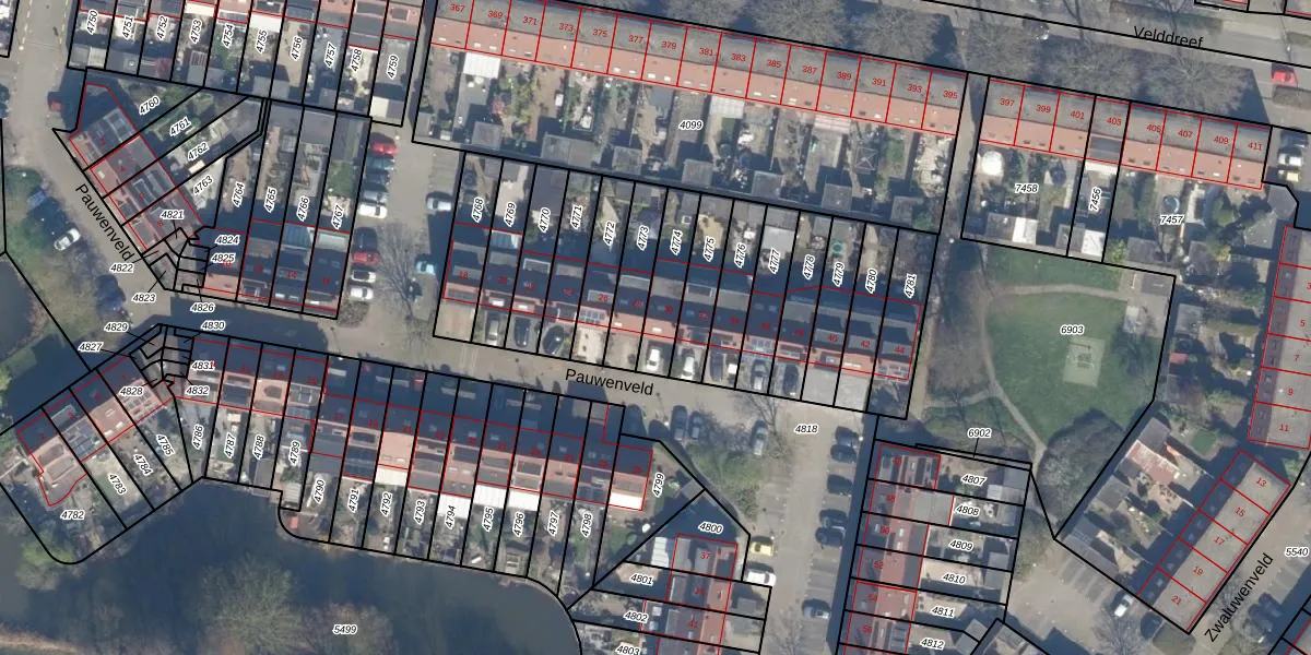 Pauwenveld 30 is gelegen op kadastraal perceel ZWD01B4774. Deze kadastrale aanduiding is uniek en wordt gebruikt door het Kadaster om eigendomsrechten en andere zakelijke rechten vast te leggen. Het perceel maakt onderdeel uit van de kadastrale gemeente Zegwaard.