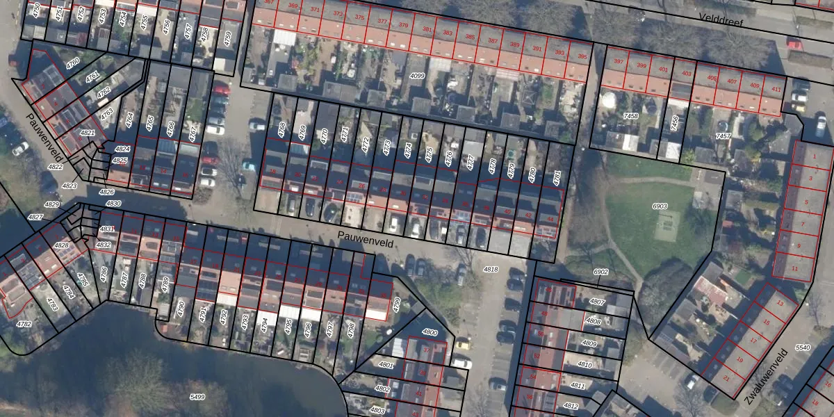 Gebruik de zoekbalk of klik op een perceel voor informatie over de adressen binnen dit perceel.