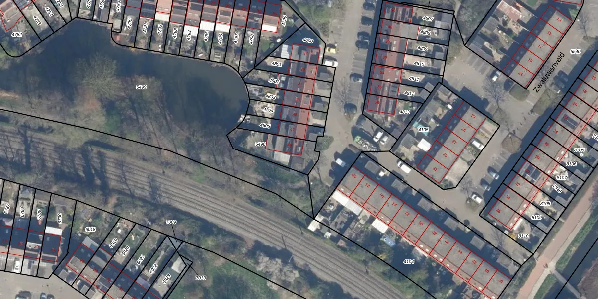Gebruik de zoekbalk of klik op een perceel voor informatie over de adressen binnen dit perceel.