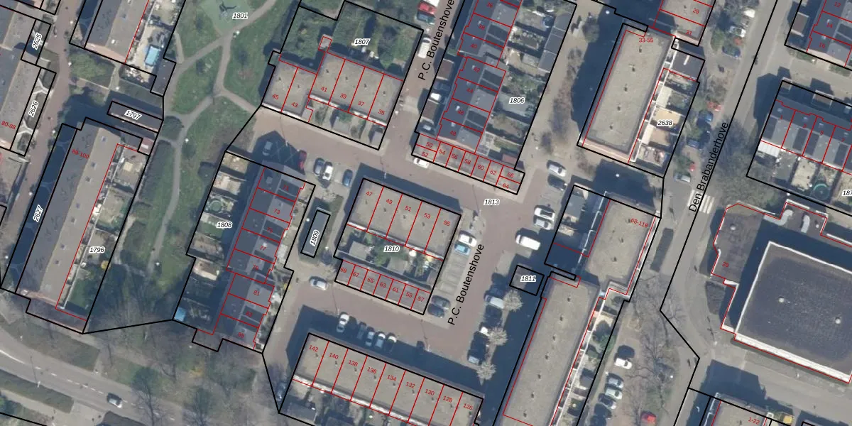 Het perceel waarop P.C. Boutenshove 53 staat heeft een oppervlakte van 601 m². Dit is een groot perceel. De perceeloppervlakte wordt geregistreerd door het Kadaster. Gedetailleerde informatie over de maten van dit perceel kunt u vinden in het rapport Kadastrale kaart met maatvoering van P.C. Boutenshove 53.